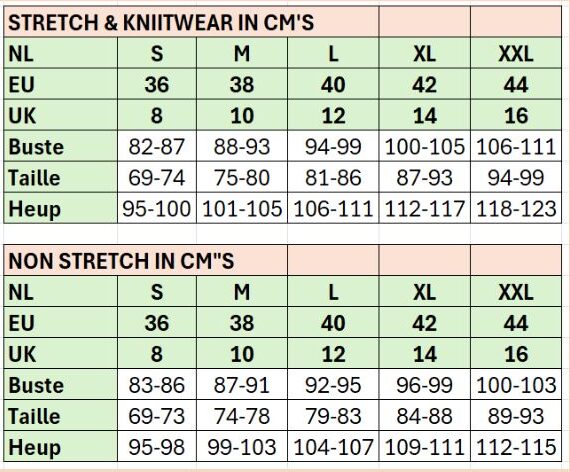 • Sluiting: geen ritssluiting – instapmodel met elastische taille
