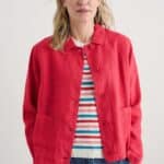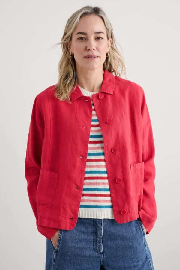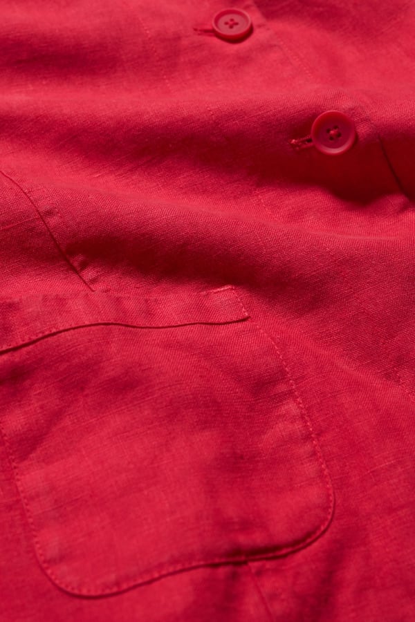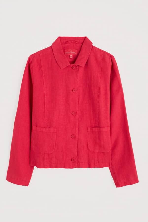 A classic garment-dyed linen jacket with an easy, relaxed structure that’s influenced by Cornish workwear. Throw over jumpers and jeans, or wear loose over flowing dresses. Our linen will grow softer and smoother with each summer of wear, developing a characterful pattern of highs and lows that is completely unique.