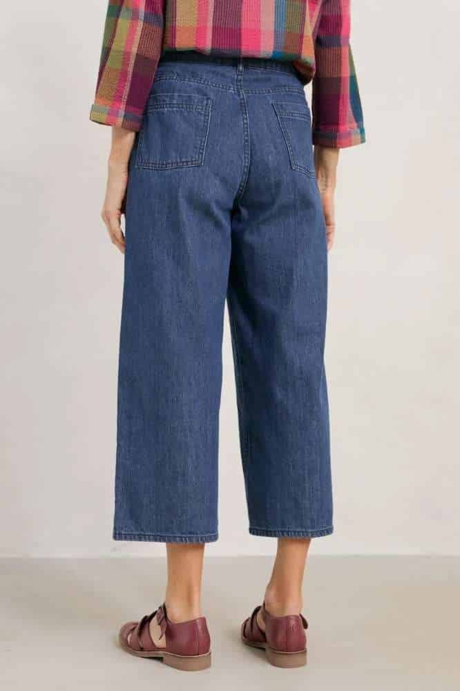De Seasalt Cornwall Barnes Crops Mid Wash Indigo is een jeans in culotte stijl die in de natuurlijke taille valt. De broek heeft een wijde pijp en een moderne look. Gemaakt van een zachte en biologische katoen, heeft deze jeans met wijde pijpen dubbele stiksels, steekzakken op voor- en achterkant en sluit hij met een knoop- en ritssluiting.