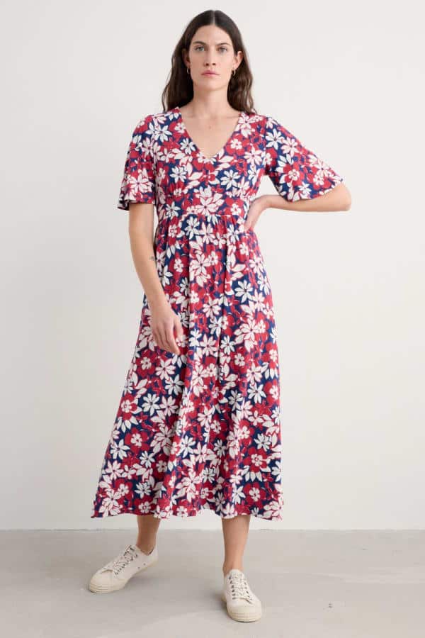 Seasalt Cornwall Chateaux Dress Seashore Floral Yacht Half Sleeve