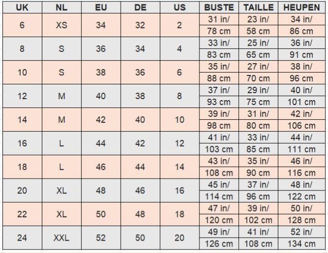 • Lengte maat 12: ca. 60 cm vanaf taille